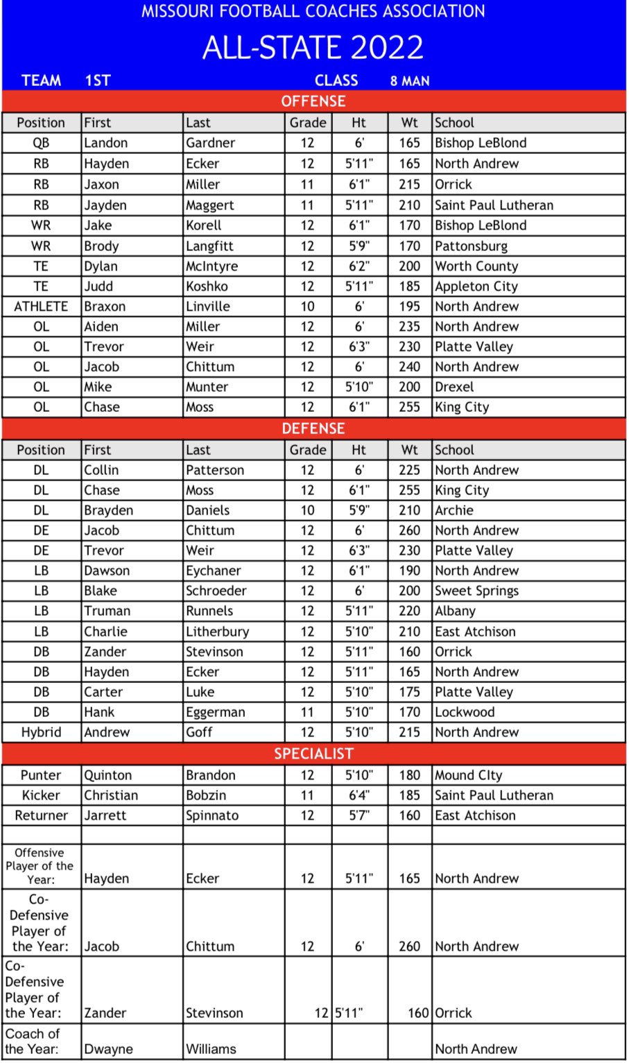 All-District 8 Team2022 Awards