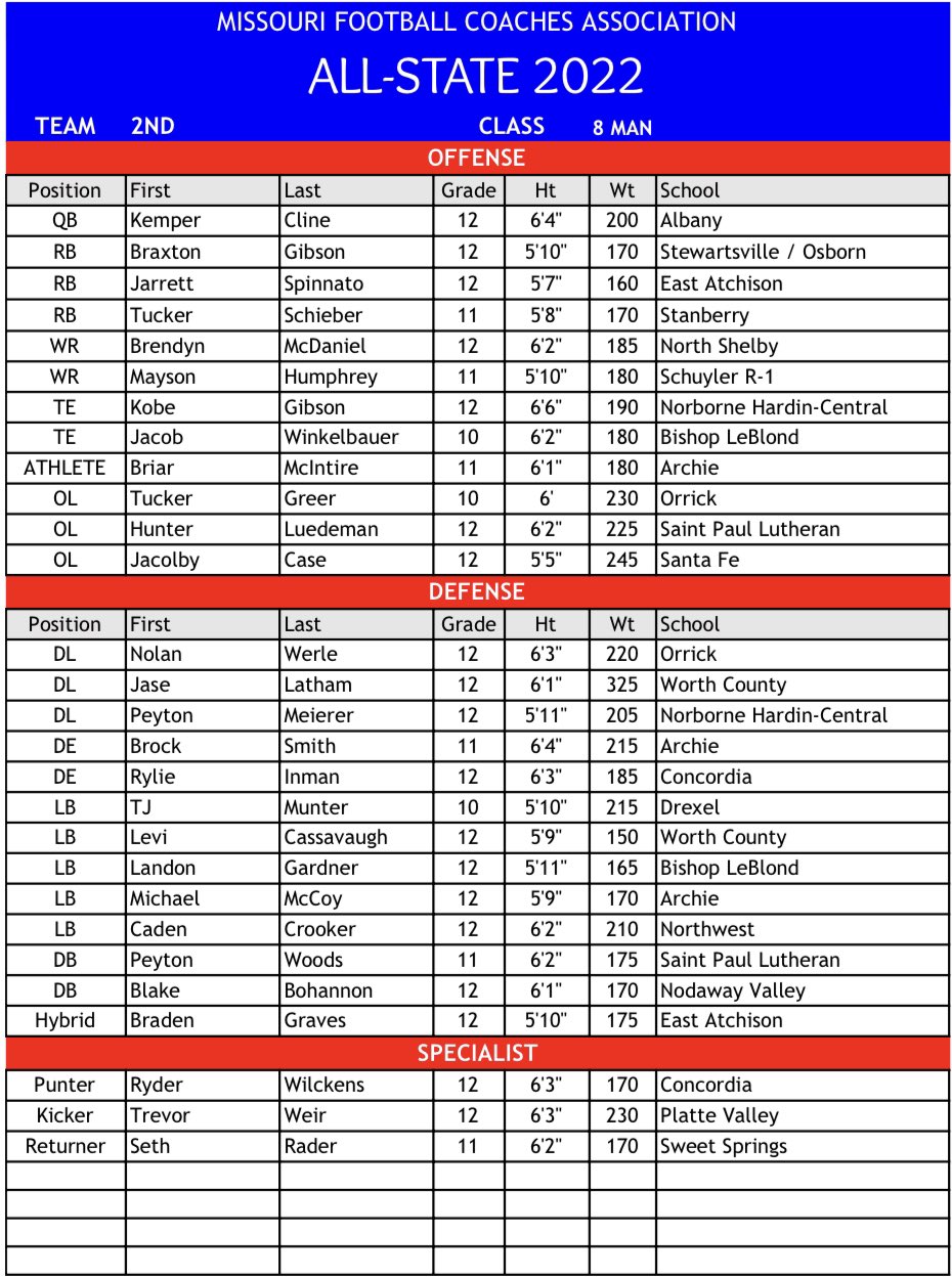 All-State Team (1st Team) (2nd Team)