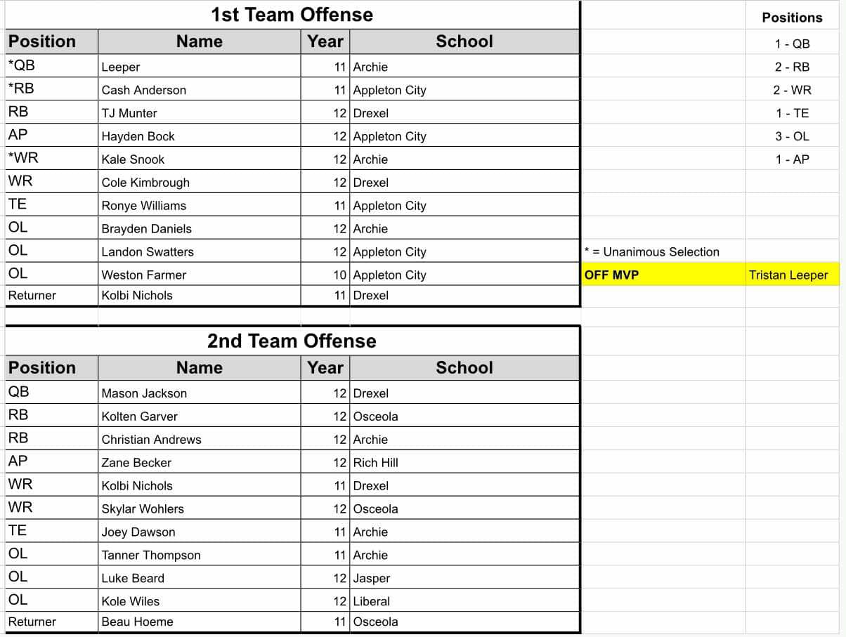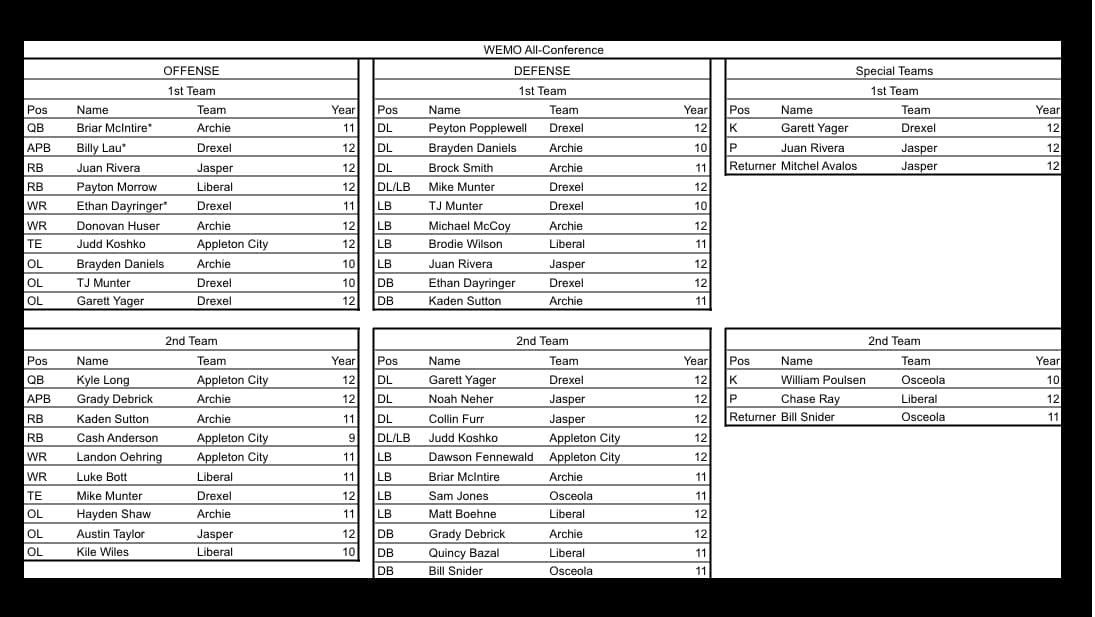 WEMO All-Conference Team (Offense)