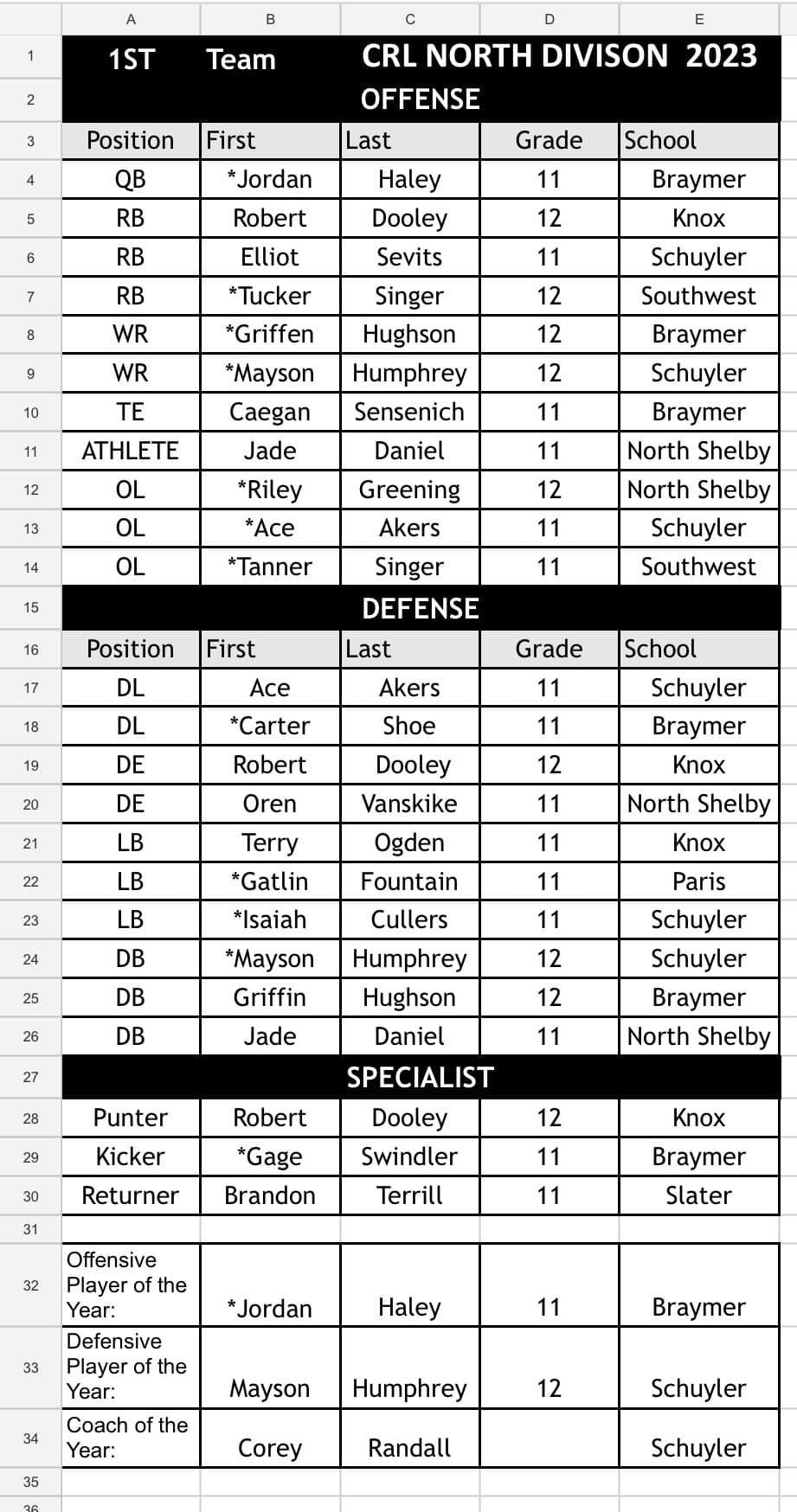 CRC South All-Conference Team