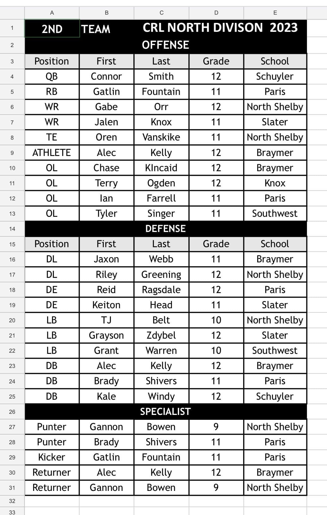 All-District 2 Team
